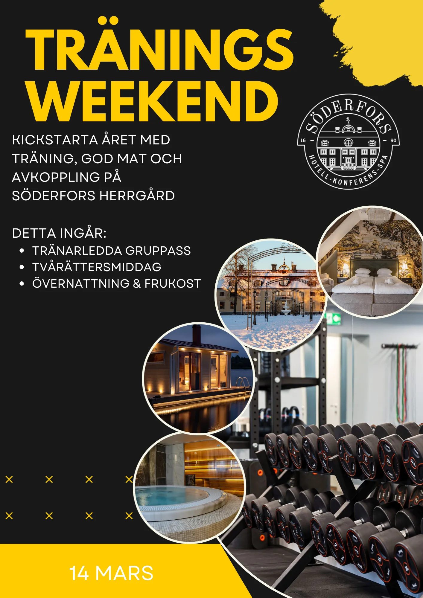 Beginnen Sie das neue Jahr mit einem inspirierenden Trainingswochenende am Dalälven. Zwei Tage lang haben Sie die Möglichkeit, Bewegung, Entspannung und gutes Essen in einer historischen Herrenhausumgebung zu kombinieren.