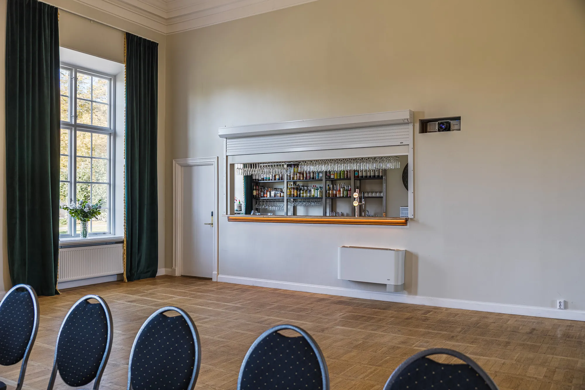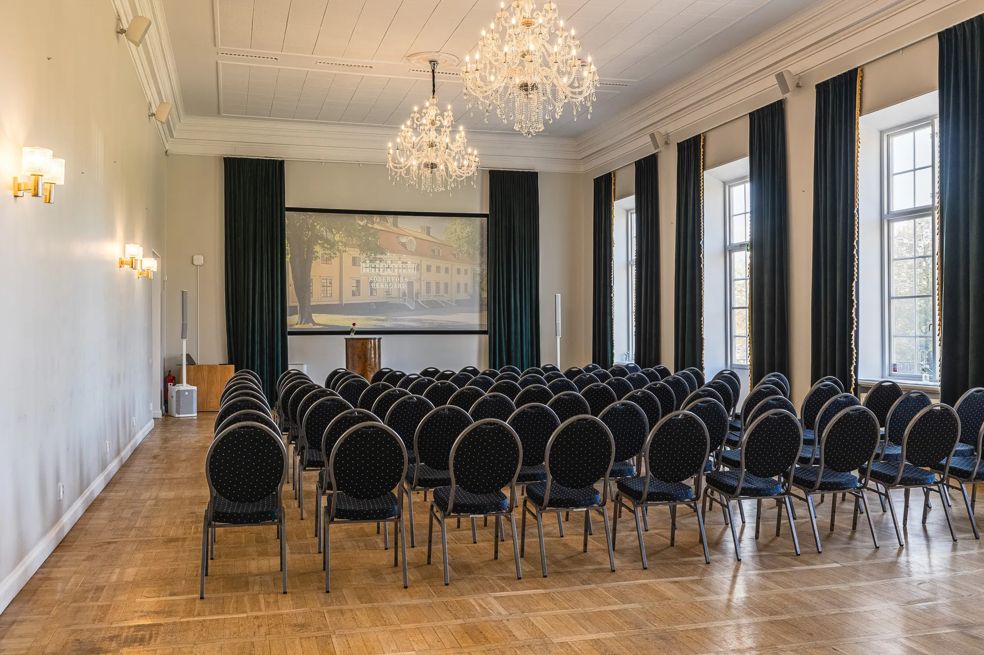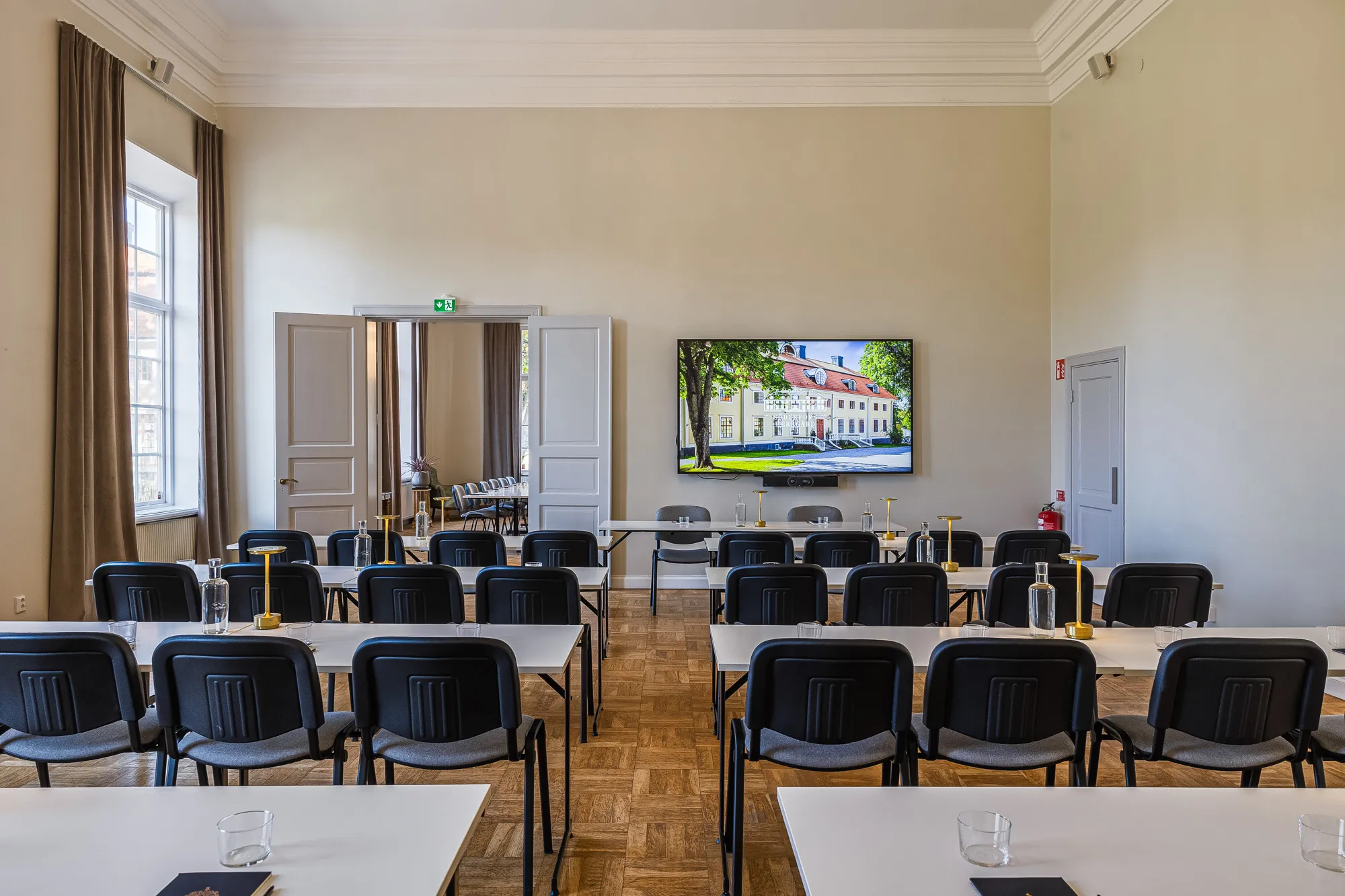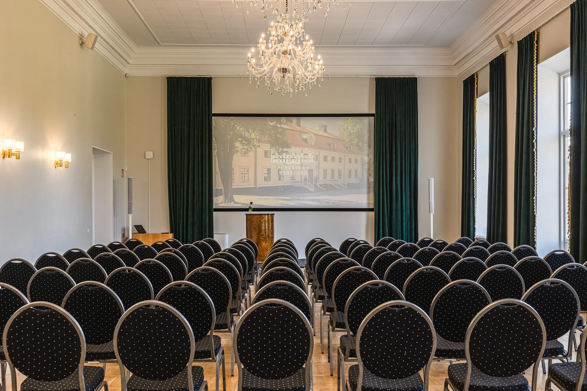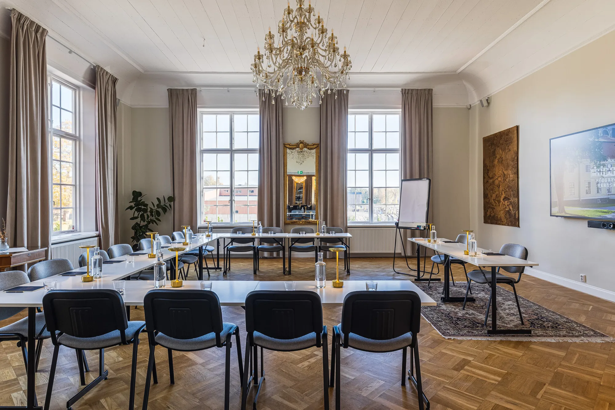 En elegant mötessal för upp till 50 personer, ofta använd för seminarier och mindre konferenser.